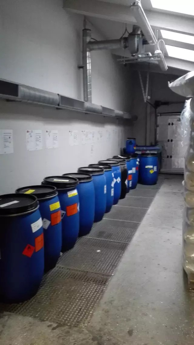 危廢這塊的收集比較嚴(yán)格,會被儲存在塑料桶中,然后集中放到一個小房間里面,這樣有效得隔絕了危廢和群眾的接觸。