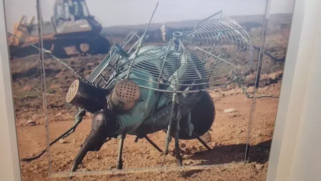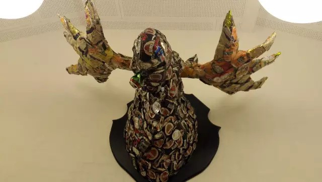 辦公室門口拜訪著一個利用廢棄物制作的小機(jī)器人模型