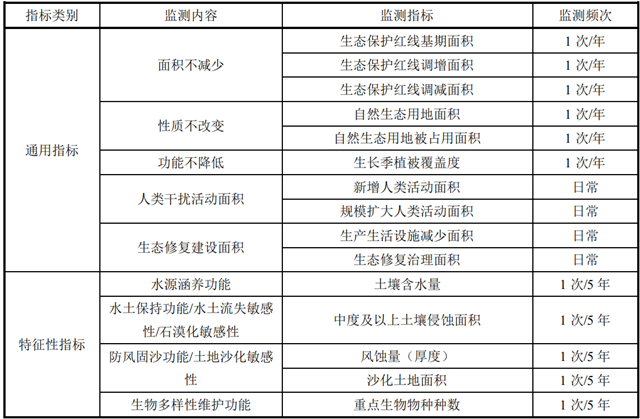 監(jiān)測內(nèi)容包括生態(tài)保護紅線內(nèi)年度實際完成的各類型人類活動及設(shè)施清退面積與生態(tài)修復(fù)治理面積總和。