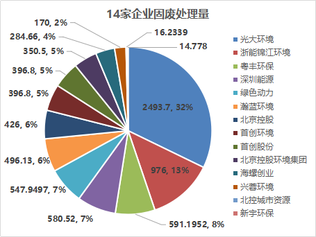 在已發(fā)布ESG報(bào)告的25家企業(yè)中,共有14家有在ESG報(bào)告中披露2019年固廢處理量情況,披露率為56%,具體如下: