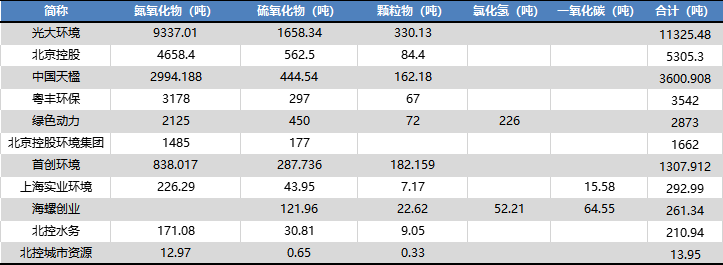 雖然焚燒可以極大減少垃圾量,但伴隨而來(lái)的,也存在有廢氣污染的問(wèn)題。通常,焚燒過(guò)程中的廢氣污染物有:氮氧化物、硫氧化物、顆粒物、氯化氫和一氧化碳。在已發(fā)布ESG報(bào)告的25家企業(yè)中,共有11家有披露廢氣污染物排放情況,披露率為44%,具體如下: