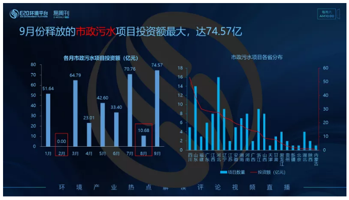 市政污水類項(xiàng)目:9月投資額釋放最大,達(dá)74.57億
