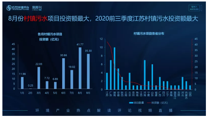 左圖為各月村鎮(zhèn)污水類項(xiàng)目釋放情況,8月釋放的村鎮(zhèn)污水類項(xiàng)目投資額最大,其次是9月份。