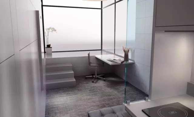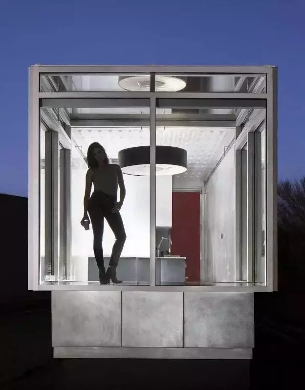 樣板房看上去還是垃圾箱的形狀,格調(diào)卻要高很多。用特殊玻璃SageGlass制成的落地窗,不僅看起來高端大氣上檔次,還能根據(jù)室外陽光強(qiáng)度自動(dòng)遮光。