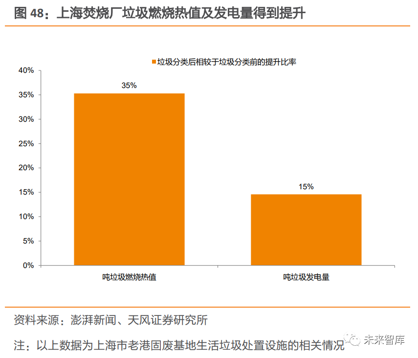 2.2. 展望國內(nèi):垃圾產(chǎn)量及焚燒占比仍處上升通道,焚燒需求將保持旺盛2.2.1. 垃圾分類減量化效果短期較難兌現(xiàn),廚余產(chǎn)能落地是關(guān)鍵影響因素從實際情況看,垃圾分類減量程度受廚余產(chǎn)能規(guī)模影響。由于有害垃圾占比很小,可回收垃圾在過去資源化利用率也較高,濕垃圾分出量對無害化處置總量影響較大。但在廚余處置產(chǎn)能不足情況下,從分揀前端分離出的濕垃圾,仍需通過焚燒等無害化處置方式進行最終解決,會削弱減量化效果。廚余產(chǎn)能缺口較大,許多城市推進垃圾分類工作時,仍面臨缺乏專業(yè)大型廚余垃圾處置設(shè)施這一難題。以濕垃圾末端處理設(shè)施建設(shè)進度較快的上海為例,截至 2020 年 6 月中旬, 濕垃圾分出量達 9632.13 噸/日,大于目前濕垃圾處置能力 5050 噸/日。據(jù)我們預測, 46 個垃圾分類重點城市,每日廚余垃圾(不含餐廚垃圾)處置需求達 15.4 萬噸。而據(jù) E20 公布,2019 年 5 月底,大規(guī)模廚余垃圾處理廠每日總處理能力合計僅為 0.6 萬噸。