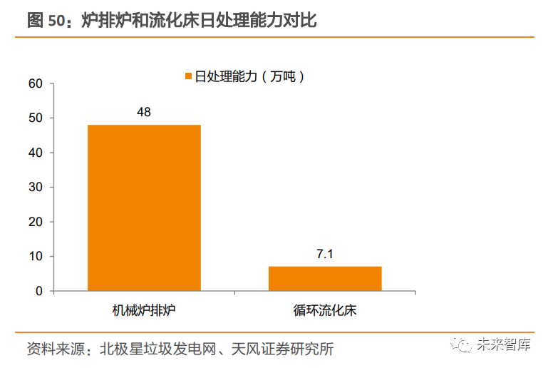 3.2.2. 噸發(fā)電量提升原因二:技術(shù)工藝優(yōu)化爐排爐已成為成熟的技術(shù)路線。垃圾焚燒技術(shù)主要包括流化床焚燒和爐排爐焚燒。在行業(yè)發(fā)展初期,由于國外引進的爐排爐焚燒技術(shù)存在不適應性以及成本高昂等問題,國內(nèi)自主研發(fā)的流化床焚燒技術(shù)應用較多。隨著國產(chǎn)化爐排爐技術(shù)發(fā)展,以及流化床技術(shù)“多飛灰” 不足的凸顯,爐排爐技術(shù)逐漸取代流化床技術(shù),得到快速發(fā)展。從現(xiàn)有爐型分布上看,2020 年,全國已運行垃圾焚燒廠 492 座,涉及 1202 臺焚燒爐,其中,機械爐排爐臺數(shù)占比超過 86%,循環(huán)流化床臺數(shù)占比不到 14%;從處置量來看,全國機械爐排爐日合計處理能力超過 48 萬噸,循環(huán)流化床日合計處理能力僅為 7 萬 1 千噸左 右。