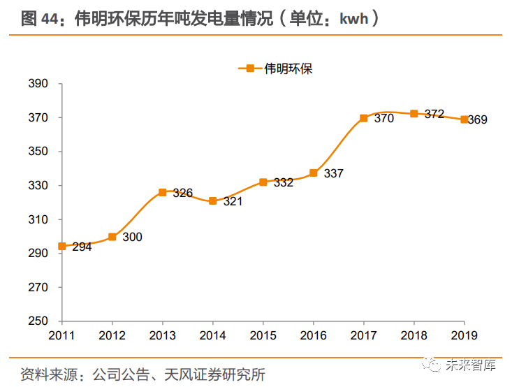 3.1.2. 運營占比提升+補貼發(fā)放提速,垃圾發(fā)電企業(yè)報表有望迎來修復運營占比提升,改善企業(yè)盈利能力及現(xiàn)金流情況。隨著企業(yè)在建項目陸續(xù)達產(chǎn),疊加國內(nèi)新增產(chǎn)能增速放緩背景下,項目新建數(shù)量增速或?qū)⒎啪?,企業(yè)運營項目占比有望提升。相較于投產(chǎn)期,運營期資本開支壓力減小,企業(yè)現(xiàn)金流壓力將得到緩解;同時企業(yè)資產(chǎn)負債 率下降,有助于降低財務費用,改善項目盈利能力。以偉明環(huán)保瑞安項目為例,該項目于 2010 年 8 月動工建設(shè),于 2014 年 5 月開始運營。進入運營期后,瑞安公司(瑞安項目的運營主體)資產(chǎn)負債率有所下降,同時凈利率有所提升。存量項目拖欠的補貼解決后,企業(yè)現(xiàn)金流有望得到改善。補貼發(fā)放不僅可以通過改善現(xiàn)金流,降低財務杠桿來減少財務費用,同時應收賬款收回,前期應收賬款計提減值沖回,也將增加公司當期業(yè)績。截止 2020 年 4 月,全國垃圾焚燒運營規(guī)模 50 萬噸/日,其中未納入目錄項目占比約 48%,累計拖欠補貼金額約 130 億元。從企業(yè)具體情況來看,我們測算出 2016-2020 年各家企業(yè)的累計拖欠補貼,并以累計拖欠補貼金額占 2019 年營收的比例作為利好彈性的觀測值。若存量補貼發(fā)放,對垃圾焚燒發(fā)電企業(yè)將帶來較大的現(xiàn)金流改善。3.2. 熱值增+技術(shù)優(yōu)化,噸發(fā)電量有望持續(xù)提升垃圾焚燒廠噸發(fā)電量及噸上網(wǎng)電量提升趨勢明顯。近年來,我國垃圾焚燒企業(yè)噸發(fā)電量及 噸上網(wǎng)電量呈現(xiàn)出明顯提升趨勢。深圳市生活垃圾處理監(jiān)管中心的數(shù)據(jù)顯示,2011~2018 年間,垃圾焚燒企業(yè)的噸垃圾上網(wǎng)電量均值提升了 42Kwh。龍頭企業(yè)提升趨勢更明顯,偉 明環(huán)保噸發(fā)電量由 2011 年 294Kwh 提升 75Kwh 至 2019 年 369Kwh,噸上網(wǎng)電量由 2011 年 239Kwh 提升 52Kwh 至 2020H1 的 291Kwh;光大環(huán)境噸上網(wǎng)電量也由 2011 年 226Kwh 提升 94Kwh 至 2020H1 的 320Kwh。