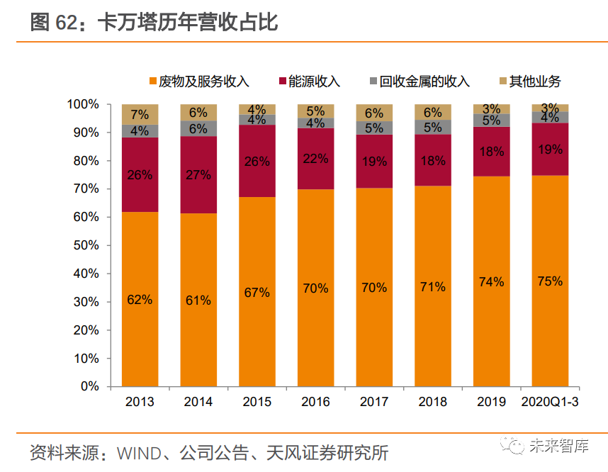 行業(yè)集中度較國外發(fā)達國家仍有差距,未來有望進一步提升。據(jù)卡萬塔公司總裁 2019 年 10 月發(fā)言介紹,卡萬塔在美國市場的占有率已接近 70%。相比之下,我國垃圾焚燒行業(yè)龍頭企業(yè)市占率仍較低,未來有望通過并購整合,繼續(xù)擴大市場規(guī)模,行業(yè)集中度或?qū)⑦M一步提高。