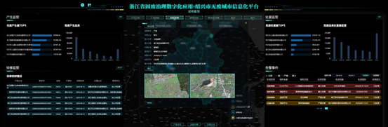 作為被列入“11+5”無廢試點城市的浙江紹興,建成全國首個對工業(yè)、農(nóng)業(yè)、建筑、生活、危廢等五大類固廢實行閉環(huán)管理的“無廢城市”信息化管理平臺,堪稱無廢城市建設(shè)的“排頭兵”。在遙感監(jiān)測監(jiān)管方面,紹興“無廢城市”信息化平臺基于遙感大范圍、快速重復(fù)覆蓋的對地觀測能力,利用多源多星高分辨率衛(wèi)星遙感技術(shù),針對紹興工業(yè)固體廢物、農(nóng)業(yè)廢棄物、生活垃圾、建筑垃圾、危險廢物的非法傾倒、堆放進行定期、不定期全域監(jiān)管,識別非法傾倒點位,測算非法傾倒堆放面積;針對大型建設(shè)工程開挖施工、礦山開挖、疑似非法采礦和礦山恢復(fù)整治進行全域監(jiān)管,識別建筑工程和采礦等行為的地表擾動、固體廢棄物堆放對周邊生態(tài)環(huán)境影響。各類廢棄物的非法傾倒、堆放點位,大型工程開挖施工、礦山開發(fā)、尾礦庫堆放點位等情況經(jīng)過遙感監(jiān)測悉數(shù)摸底,通過分析監(jiān)管平臺本底數(shù)據(jù),與GIS地圖結(jié)合,形成全市統(tǒng)一監(jiān)控數(shù)據(jù)看板,實現(xiàn)紹興全域的長期動態(tài)監(jiān)測,對全局狀態(tài)精準掌控、對具體變化細節(jié)智能對比,為執(zhí)法監(jiān)管提供科學(xué)數(shù)據(jù)決策。紹興無廢城市信息化平臺利用動態(tài)視頻圖像分析能力,對固體廢棄物的非法傾倒、堆放、拋灑,非法開挖施工等事件的遙感監(jiān)測圖像進行精準識別、比對分析,有效提升此類事件的監(jiān)測、預(yù)警及處置效率,打造更加全面更加精準的全域事件監(jiān)管分析。