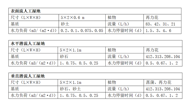 (1)人工濕地主要設(shè)計參數(shù)探索研究
