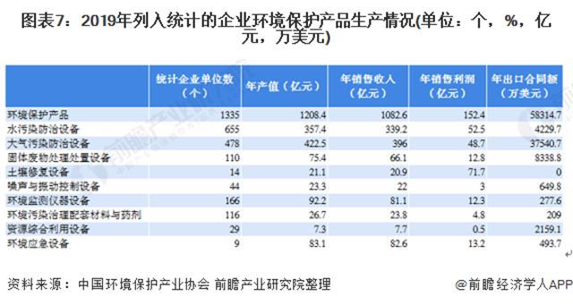 在《2020環(huán)保產(chǎn)業(yè)發(fā)展?fàn)顩r報(bào)告》中,2019年納入統(tǒng)計(jì)的環(huán)保設(shè)備市場(chǎng)共有1583家企業(yè);年產(chǎn)值為1018.60億元,銷售收入和銷售利潤(rùn)分別為949.10億元和135.80億元,實(shí)現(xiàn)出口合同額51245.60萬美元。