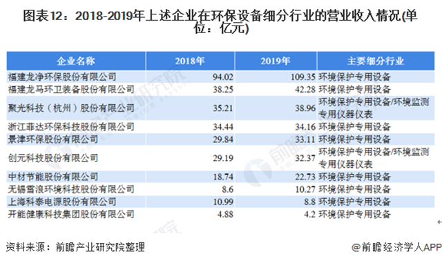 我國(guó)的環(huán)保設(shè)備企業(yè)市場(chǎng)規(guī)模普遍不大,大多數(shù)企業(yè)為中小型企業(yè)。從企業(yè)性質(zhì)來看,在中國(guó)環(huán)保設(shè)備制造行業(yè)中占據(jù)主導(dǎo)地位的是私營(yíng)企業(yè)。在其環(huán)保設(shè)備細(xì)分行業(yè)中,2019年福建龍凈環(huán)保的營(yíng)收為109.35億元,其營(yíng)收占了前十企業(yè)環(huán)保設(shè)備行業(yè)營(yíng)收的32.52%,其占據(jù)著環(huán)保設(shè)備行業(yè)不可撼動(dòng)的位置;其后依次是龍馬環(huán)衛(wèi)、聚光科技、菲達(dá)環(huán)保,分別占前十企業(yè)環(huán)保設(shè)備營(yíng)收的12.57%,11.59%和10.16%。