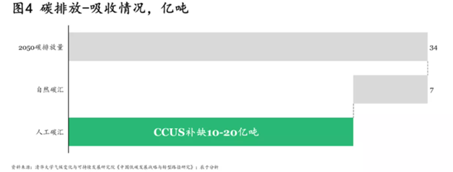綜合各減排渠道,仍有30%左右的碳排放無法通過減排消除,除去自然碳匯后,有10-20億噸的二氧化碳需人工處置,CCUS因此變得不可或缺(見圖4)。