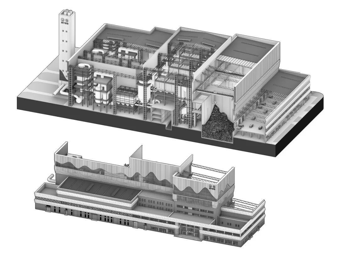 △園區(qū)垃圾焚燒發(fā)電廠整體建筑形態(tài) ?UUAOverall Architectural Form of the Power Plant