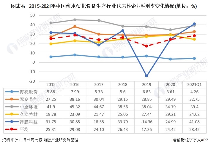 本文核心數(shù)據(jù):反滲透膜市場份額、海水淡化設(shè)生產(chǎn)行業(yè)代表性企業(yè)毛利率變化
