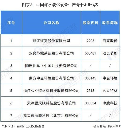 從細分市場來看,我國海水淡化設(shè)備行業(yè)中的骨干企業(yè)包括浙江海亮股份有限公司、雙良節(jié)能系統(tǒng)股份有限公司、陶氏化學(xué)(中國)投資有限公司、南方中金環(huán)境股份有限公司、浙江久立特材料科技股份有限公司、天津膜天膜科技股份有限公司、藍星東麗膜科技有限公司等。