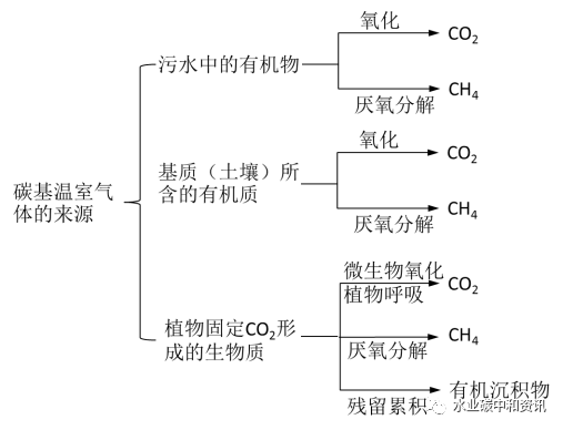 人工濕地中CO2和CH4均產(chǎn)生于濕地系統(tǒng)中有機物的代謝與轉(zhuǎn)化。常規(guī)上,人工濕地中所釋放的CO2都被認(rèn)為是生源性(即,有機物的自然歸宿)的,不計入GHG排放目錄。因此,CH4的排放量決定了人工濕地中碳基GHG的最終排放效應(yīng),即,碳源還是碳匯。因此,人工濕地中控制有機物向CH4轉(zhuǎn)化是實現(xiàn)其GHG減排的關(guān)鍵步驟。******