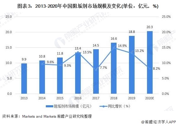 阻垢劑市場規(guī)模達(dá)到約20億元