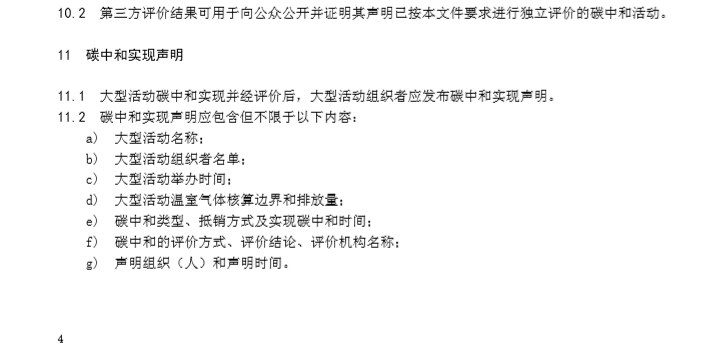 6.2發(fā)布碳中和實施計劃,發(fā)布內(nèi)容應(yīng)包括大型活動名稱、舉辦時間、舉辦地點、活動內(nèi)容、減排措施、預(yù)估排放量、碳中和的抵銷方式及預(yù)期實現(xiàn)碳中和時間等。