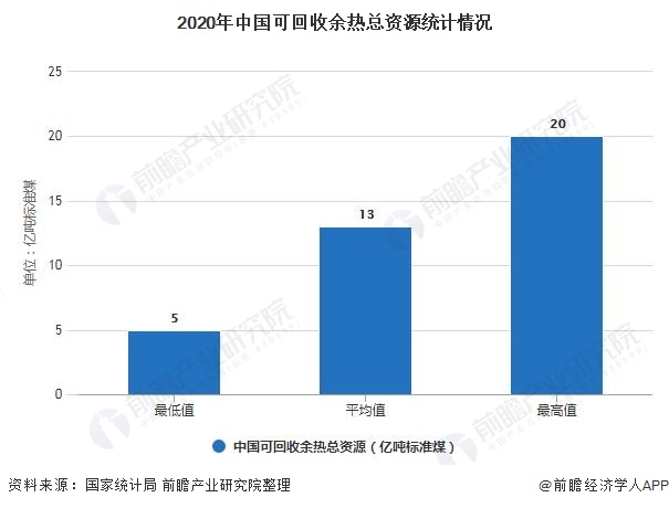 根據全國能源消費總量與可回收余熱資源占比進行測算,2020年我國可回收余熱總資源平均值約13億噸標準煤,計劃2020年余熱資源利用率達到30%,當前我國余熱資源利用率不斷提高,仍有較大的提升空間。