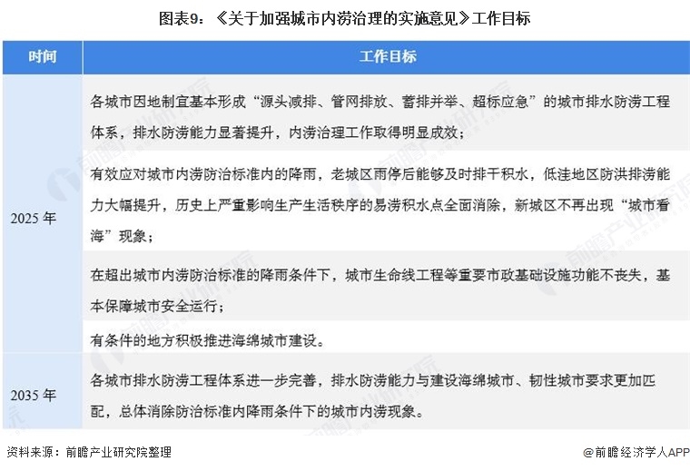 在工作目標(biāo)方面,提出了2025年,各城市因地制宜基本形成“源頭減排、管網(wǎng)排放、蓄排并舉、超標(biāo)應(yīng)急”的城市排水防澇工程體系;2035年總體消除防治標(biāo)準(zhǔn)內(nèi)降雨條件下的城市內(nèi)澇現(xiàn)象。