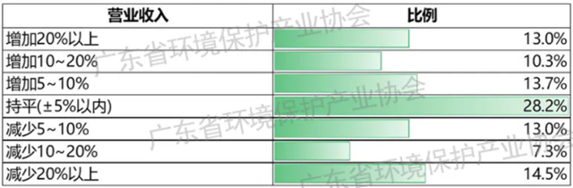 在營業(yè)收入方面,37.0%的環(huán)保企業(yè)反饋2021年上半年營業(yè)收入同比增長,28.2%的環(huán)保企業(yè)基本持平,34.7%的環(huán)保企業(yè)表示同比下降。
