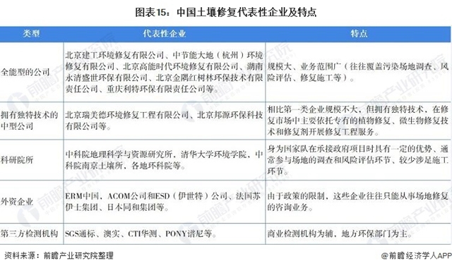 目前國內(nèi)從事土壤修復(fù)的企業(yè)越來越多,用“雨后春筍”來形容毫不為過。由于預(yù)期土壤修復(fù)市場規(guī)模巨大,各行各業(yè)都開始往這方面發(fā)展。從產(chǎn)業(yè)鏈角度看,我國土壤修復(fù)行業(yè)既有綜合性企業(yè),也有專注于修復(fù)咨詢、技術(shù)支撐、調(diào)查評估、修復(fù)工程、第三方檢測,甚至學(xué)術(shù)研究、地質(zhì)礦山、土壤肥料、土方工程、植物營養(yǎng)等某一方面的企業(yè)和機(jī)構(gòu)。