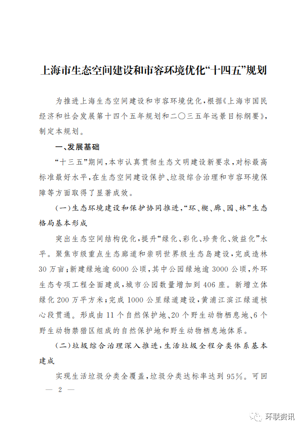 上海市人民政府辦公廳印發(fā)《上海市生態(tài)空間建設(shè)和市容環(huán)境優(yōu)化“十四五”規(guī)劃》,附全文圖解!