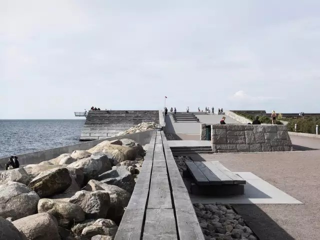 Dania濱海公園位于瑞典和丹麥分界處的?resund海峽一側(cè)。該公園是原馬爾默海岸西部港口改造工程的主要項(xiàng)目之一,也是瑞典國內(nèi)對城市用地進(jìn)行開發(fā)再利用的最為雄心勃勃的項(xiàng)目之一。該用地曾經(jīng)是寸草不生的垃圾填埋場;是一片充斥著臟污不堪的淤泥的工業(yè)荒漠。起初,難以定義的基地條件給設(shè)計(jì)師帶來了不小的困難,最終那些自然的瞬息萬變的元素反而構(gòu)成了設(shè)計(jì)的主角:光、風(fēng)、大海、地面線以及一望無際的遠(yuǎn)景。這是一片隨季節(jié)和氣候變化的場所,人們在這里可以體驗(yàn)巖石的堅(jiān)硬與海浪的兇悍,體驗(yàn)落日的壯美與夏日的明媚。公園最重要的組成要素是被稱為“Scouts(瞭望臺)”的部分:三個(gè)傾斜的混凝土臺,嵌入到巖石組成的海岸線中,讓來到公園的人們可以深入大海。40X40m的被稱為“堡壘”的平臺,比海平面高6m,無論是強(qiáng)烈的海風(fēng)還是壯美的落日,只要站在這里都能暢快地體驗(yàn)。此外,三個(gè)木箱組成的“陽臺”提供了俯瞰廣闊草坪的場所。后者是一塊絕佳的室外活動(dòng)場地,兩排高地錯(cuò)落的樹木及耐鹽灌木將強(qiáng)烈的海風(fēng)阻隔在外。