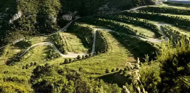 路徑的精心設(shè)計(jì)引導(dǎo)著游客在蜿蜒的梯田上查看恢復(fù)工作并欣賞風(fēng)景。由廢棄物構(gòu)成的矮墻設(shè)置在路徑旁,提醒著游客不應(yīng)忘卻場地幾十年的歷史。