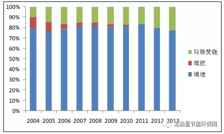 垃圾焚燒可以快速處理堆積成山的垃圾,有效減小垃圾的體積50%-90%,同時通過焚燒發(fā)電,既解決了垃圾填埋的占地、污染問題,又實現(xiàn)了能源的清潔回收利用。目前,我國城市生活垃圾累積堆存量已達70 億噸,據(jù)國家統(tǒng)計局數(shù)據(jù)顯示,截止2013 年我國生活垃圾填埋比例占68.2%,垃圾焚燒占30.1%,而2014年、2015年、2016年垃圾焚燒一直保持快速增長的態(tài)勢。