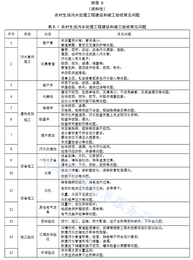 4.3 農(nóng)村生活污水處理設(shè)施驗收應(yīng)包含工程驗收和環(huán)保驗收,既要保證工程質(zhì)量合格也要保證出水水 質(zhì)水量達(dá)標(biāo),兩者均通過驗收方可視為竣工驗收通過。