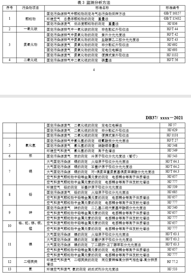 3.大氣污染物濃度的測(cè)定采用表3所列的標(biāo)準(zhǔn)方法。本標(biāo)準(zhǔn)發(fā)布實(shí)施后,有新發(fā)布的國(guó)家環(huán)境監(jiān)測(cè)分析方法標(biāo)準(zhǔn),如適用性滿足要求,也適用于本標(biāo)準(zhǔn)對(duì)應(yīng)污染物的測(cè)定。