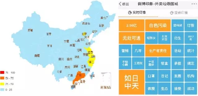抽取702條網(wǎng)民評論發(fā)現(xiàn),關(guān)注地域最多的是廣東、浙江、江蘇、北京,關(guān)注最熱詞為垃圾分類、塑料餐盒、環(huán)保等,輿情熱度趨勢為平穩(wěn)。