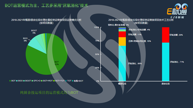 (4)2020年餐廚/廚余垃圾的非PPP特許經(jīng)營項目存在中標的“小高峰”;近三年投運項目從運營模式看,以BOT模式為主;從技術(shù)工藝看,主要以厭氧消化為主;從社會資本方看:民企(C/D方陣)在投運市場不斷發(fā)力。