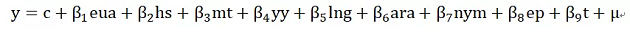 對(duì)于同類替代產(chǎn)品,本文將選擇歐盟排放配額(EUA)作為國(guó)內(nèi)碳現(xiàn)貨的同類替代產(chǎn)品。對(duì)于宏觀經(jīng)濟(jì)活動(dòng),本文將使用由滬深證券交易所聯(lián)合發(fā)布的滬深300指數(shù),其能夠用來(lái)反映A股市場(chǎng)整體走勢(shì)的指數(shù),樣本股的行業(yè)分布跟市場(chǎng)的行業(yè)分布狀況較為接近,具有較好的代表性。對(duì)于能源與氣候變化,本文將使用國(guó)內(nèi)煤炭指數(shù)、大慶原油指數(shù)、ARA動(dòng)力煤一年遠(yuǎn)期價(jià)格、中國(guó)液化天然氣(LNG)萬(wàn)得指數(shù)、天然氣指數(shù)(NYMEX)、以及試點(diǎn)城市所在省每年工業(yè)用電的電力平均價(jià)格作為電價(jià)衡量指標(biāo),同時(shí)還將使用試點(diǎn)市場(chǎng)所在地的月平均氣溫作為氣候變化方面的指標(biāo)。最終,本文建立回歸模型如下:
