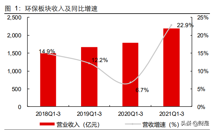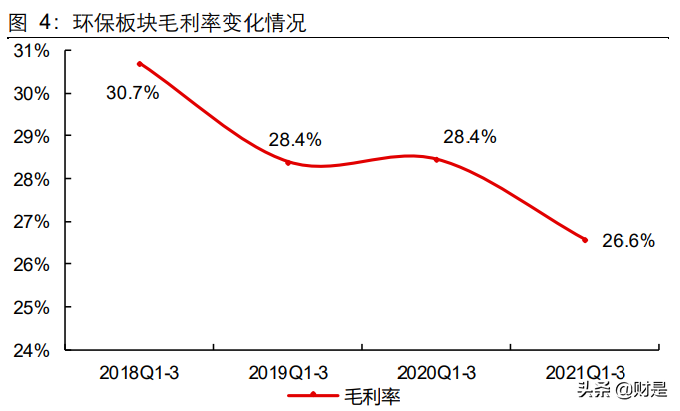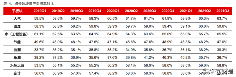 利潤(rùn)表:收入、利潤(rùn)同比增速均超20%,近兩年收入復(fù)合增速為14.8%2021Q1-Q3環(huán)保板塊實(shí)現(xiàn)營(yíng)收2311億元,同比增23.3%;歸母凈利潤(rùn)232.3億元,同比增20.8%;扣非歸母凈利潤(rùn)203.3億元,同比增17.6%;毛利率同比降 1.8pct至27.1%。環(huán)保行業(yè)基本擺脫疫情負(fù)面影響,收入、利潤(rùn)增速等成長(zhǎng)性指標(biāo)表現(xiàn)向好,營(yíng)收同比增速排序分別為檢測(cè)(35.5%)、水(工程設(shè)備)(31.1%)、水務(wù)運(yùn)營(yíng)(29.7%)、固廢(20.4%)、節(jié)能(19.0%)、大氣(17.1%)、監(jiān)測(cè)(4.6%),各子行業(yè)收入增速均恢復(fù)正增長(zhǎng)。工程、服務(wù)類業(yè)務(wù),去年受疫情影響較重,故檢測(cè)、水(工程設(shè)備)恢復(fù)較為顯著;固廢、水務(wù)運(yùn)營(yíng)主要是運(yùn)營(yíng)業(yè)務(wù)為主,剛需性強(qiáng),同時(shí)疊加行業(yè)具備成長(zhǎng)性,故主要是自身成長(zhǎng)性的體現(xiàn),水務(wù)存在個(gè)股影響;其余板塊需求變化不大,也在穩(wěn)步增長(zhǎng)。