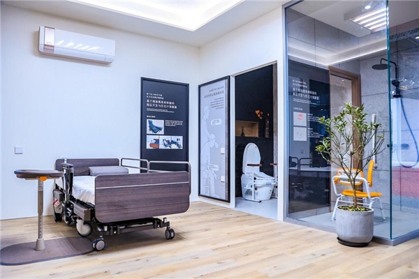 衛(wèi)浴空間內(nèi),健康一體機可以通過收集分析如廁時的身體數(shù)據(jù),了解自身狀態(tài),將“健康防線”前移,升級版產(chǎn)品逐步嵌入舒適元素。臥室內(nèi),電動分離床可隨時將睡床的一部分獨立分出來,變成一臺全自動電動移動椅,最大限度降低老年人生活障礙及護理人員負擔(dān)……看似普通的養(yǎng)老空間內(nèi),科技讓養(yǎng)老生活更有溫度。