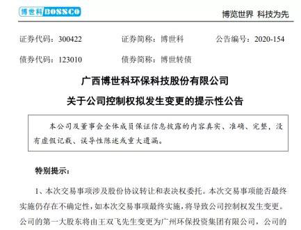 這次股份轉(zhuǎn)讓完成后,廣州環(huán)投集團(tuán)成為博世科的第一大股東,廣州市人民政府成為公司的實(shí)際控制人,博世科正式變身國(guó)企。