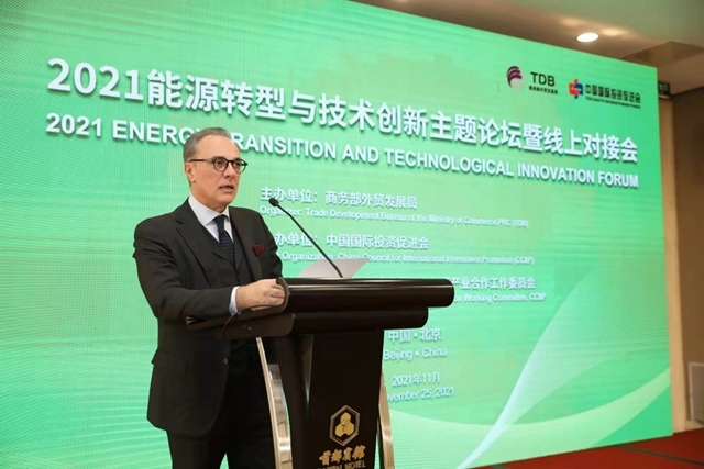 2021年11月25日下午,由商務部外貿(mào)發(fā)展局主辦、中國國際投資促進會承辦、中國國際投資促進會能源產(chǎn)業(yè)合作工作委員會協(xié)辦的“2021年能源轉型與技術創(chuàng)新主題論壇暨線上對接會”成功舉辦。本次論壇以“能源轉型與技術創(chuàng)新”為主題,聚焦“雙碳目標”背景下的能源轉型與技術創(chuàng)新,宣傳推廣自主品牌企業(yè),促進中外企業(yè)在清潔能源開發(fā)利用、傳統(tǒng)能源節(jié)能減排等領域開展深入交流與合作。