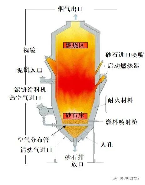 污泥進(jìn)爐口:位于砂床上方,流化床干化到干度90%左右,爐子需要干濕污泥一起燒,因此需要搭配。半干污泥輸送采用螺旋和刮板輸送的方式送入焚燒爐內(nèi)。(小編說:進(jìn)料采用砂床上方進(jìn)料,污泥進(jìn)入后會(huì)往下掉,上部需要做的更大,才能保證煙氣停留時(shí)間。)