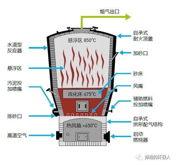 干化焚燒單元:流化床干化機(jī)+流化床焚燒爐