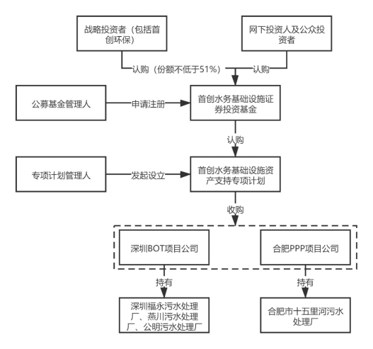 其次,由富國資產(chǎn)作為專項計劃管理人設(shè)立首創(chuàng)水務(wù)基礎(chǔ)設(shè)施資產(chǎn)支持專項計劃,首創(chuàng)水務(wù)基礎(chǔ)設(shè)施證券投資基金設(shè)立后以募集資金認購資產(chǎn)支持專項計劃全部份額,專項計劃完成設(shè)立。