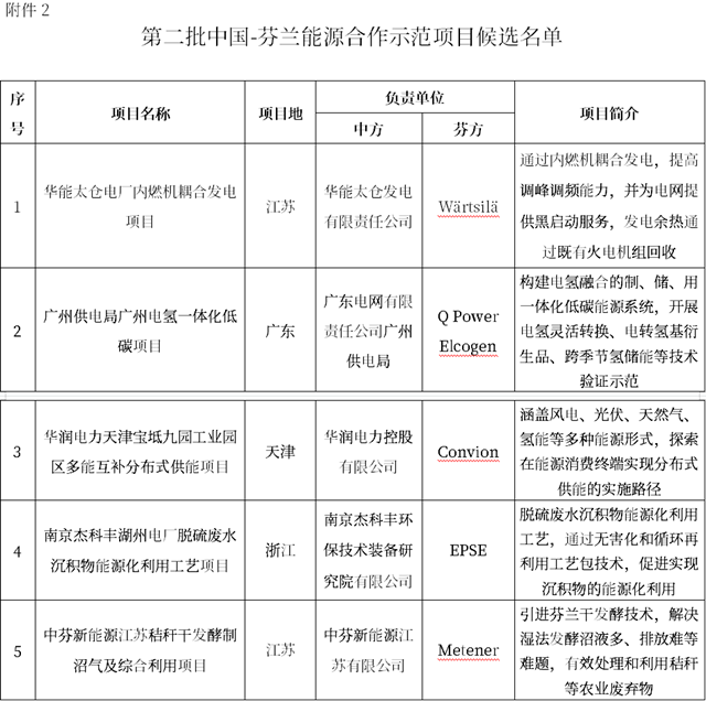 2021年12月20日,國(guó)家能源局發(fā)布《關(guān)于首批中國(guó)-芬蘭能源合作示范項(xiàng)目更新名單以及第二批示范項(xiàng)目候選名單的公示》。