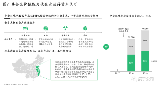 具備全價值鏈能力的企業(yè)也在資本市場有更高的競爭力,在行業(yè)并購案中,由于企業(yè)具備全價值鏈能力而得到高溢價收購的案例不在少數(shù),例如中金環(huán)境于2017年底以815%的溢價收購浙江金泰萊(見圖7)。