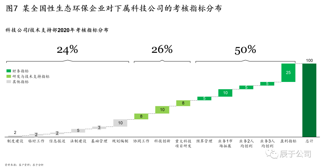 然而實(shí)際情況是:這些技術(shù)公司要么是“扶不起的阿斗”,經(jīng)營(yíng)多年,干的仍然主要是公司內(nèi)部的那些業(yè)務(wù),有些甚至“只外包不實(shí)干”,成為名副其實(shí)的“二道販子”,徒增成本之外,對(duì)企業(yè)沒(méi)有太多增值(見(jiàn)圖5);要么是“眼睛全往外看”,一心想的是如何開(kāi)拓外部市場(chǎng),對(duì)公司內(nèi)部的業(yè)務(wù)“不聞不問(wèn)不參與”,例如針對(duì)一家全國(guó)性生態(tài)環(huán)保企業(yè)的調(diào)研發(fā)現(xiàn),下屬技術(shù)公司超過(guò)80%的技術(shù)人員都在做外部市場(chǎng),只有不足20%的人偶爾會(huì)參與內(nèi)部項(xiàng)目,8條業(yè)務(wù)線(xiàn)只有1條業(yè)務(wù)線(xiàn)形成了標(biāo)準(zhǔn)化的技術(shù)方案。