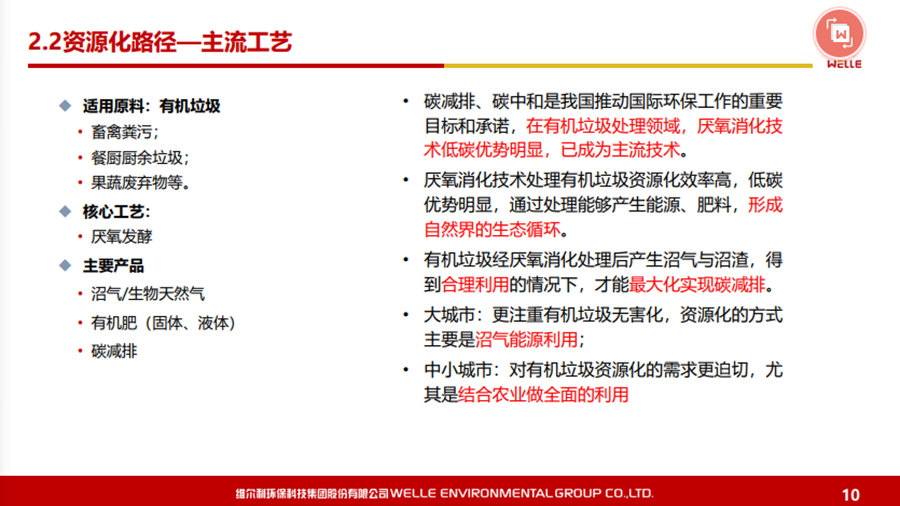 本文圍繞碳中和背景下的政策機(jī)遇、城鄉(xiāng)有機(jī)廢棄物資源化的的主要處理方法和路徑等內(nèi)容展開,同時(shí)對(duì)維爾利集團(tuán)概況和發(fā)展歷程做了簡(jiǎn)要回顧。 2021年10月20-21日,2021年中國沼氣學(xué)會(huì)學(xué)術(shù)年會(huì)暨中德沼氣合作論壇在南京舉行。作為2021年中國沼氣學(xué)會(huì)學(xué)術(shù)年會(huì)的承辦單位,維爾利環(huán)??萍技瘓F(tuán)股份有限公司董事長(zhǎng)李月中博士以《城鄉(xiāng)有機(jī)廢棄物資源化路徑探討》為主題,與大家一起探討了碳中和背景下城鄉(xiāng)有機(jī)廢棄物資源化的發(fā)展與未來。報(bào)告圍繞碳中和背景下的政策機(jī)遇、城鄉(xiāng)有機(jī)廢棄物資源化的的主要處理方法和路徑等內(nèi)容展開,同時(shí)對(duì)維爾利集團(tuán)概況和發(fā)展歷程做了簡(jiǎn)要回顧。本文根據(jù)其發(fā)言整理。▼維爾利環(huán)??萍技瘓F(tuán)股份有限公司董事長(zhǎng) 李月中各位領(lǐng)導(dǎo)、各位專家、各位同仁,大家上午好!今天有幸代表維爾利集團(tuán)和大家做交流,作為會(huì)議的承辦方,也感謝中國沼氣學(xué)會(huì)、南京大學(xué)、德國沼氣協(xié)會(huì)給維爾利這個(gè)機(jī)會(huì)。維爾利作為專業(yè)的企業(yè),實(shí)際上歷史并不是很長(zhǎng),但是我們對(duì)沼氣和厭氧技術(shù)這塊有自己的獨(dú)到見解。作為一個(gè)商業(yè)機(jī)構(gòu),企業(yè)怎么能夠在競(jìng)爭(zhēng)行業(yè)里生存和發(fā)展?在這里和大家做一些交流,和大家一起思考,同時(shí)希望在座的同仁能夠在這個(gè)行業(yè)相對(duì)比較困難的情況下抱團(tuán)取暖。2020年9月,國家主席習(xí)近平在聯(lián)合國大會(huì)上提出“二氧化碳排放力爭(zhēng)于2030年前達(dá)到峰值,努力爭(zhēng)取2060年前實(shí)現(xiàn)碳中和”。2021年3月15日,習(xí)近平總書記主持召開中央財(cái)經(jīng)委員會(huì)第九次會(huì)議并發(fā)表重要講話強(qiáng)調(diào),要把碳達(dá)峰、碳中和納入生態(tài)文明建設(shè)整體布局,拿出抓鐵有痕的勁頭,如期實(shí)現(xiàn)2030年前碳達(dá)峰、2060年前碳中和的目標(biāo)。從能源結(jié)構(gòu)上來說,有機(jī)垃圾資源化產(chǎn)生的生物質(zhì)能源在實(shí)現(xiàn)雙碳目標(biāo)上具有獨(dú)特意義。這實(shí)際上也是倒推企業(yè)行業(yè)轉(zhuǎn)型。對(duì)大家來說,“碳達(dá)峰碳中和”既是一個(gè)挑戰(zhàn)也是一個(gè)機(jī)會(huì)。這里面包括了現(xiàn)在我們推出的對(duì)城市環(huán)境,對(duì)農(nóng)村農(nóng)業(yè)環(huán)境可能存在的機(jī)會(huì),這些機(jī)會(huì)對(duì)環(huán)保產(chǎn)業(yè)來說,個(gè)人認(rèn)為受到政策影響比較大。為什么德國2016年在農(nóng)業(yè)生物天然氣領(lǐng)域有下滑?是因?yàn)槟承┱叱霈F(xiàn)了不到位的情況,一些企業(yè)就不愿意去做。在碳達(dá)峰、碳減排的前提下,我們有很多的機(jī)會(huì),但這個(gè)機(jī)會(huì)要真正落實(shí),還是要國家從頂層設(shè)計(jì)到具體的政策到位,才能夠使這個(gè)行業(yè)有比較好的發(fā)展。在城市環(huán)境治理領(lǐng)域,城市有機(jī)廢棄物(垃圾量)非常大。上海實(shí)施垃圾分類以后,2020年上海濕垃圾的產(chǎn)生量是每天在9500-10000噸左右,也就是說1/3為濕垃圾。這對(duì)焚燒廠來說,是一個(gè)巨大的減負(fù),但同時(shí)對(duì)處理能力也有了條件限制。我們深度參與了這方面工作,現(xiàn)在上海的處理能力大概為4000噸左右,意味著上海的濕垃圾處理能力還有60%在建,徹底實(shí)現(xiàn)垃圾分類的路還很遠(yuǎn)。北京情況更為嚴(yán)重。原來北京只有幾個(gè)堆肥廠,原來只是三相做一點(diǎn)小的堆肥,如果真的要實(shí)現(xiàn)垃圾源頭分類,大概4、5千噸的垃圾處理設(shè)施要重新建設(shè)。在農(nóng)業(yè)農(nóng)村環(huán)境治理領(lǐng)域,包括農(nóng)產(chǎn)品加工這方面,整個(gè)市場(chǎng)規(guī)??赡芨?。各位前輩都已經(jīng)做了一些介紹,我們是不是能夠全部實(shí)現(xiàn)資源化處理,是值得商榷的。對(duì)于不同的原料,我們應(yīng)該怎么處理?作為企業(yè),我們推行起來還是有一定的難度。我們現(xiàn)在的這些大型的沼氣項(xiàng)目,它的源頭、原料、收益、收益成本,包括最終的產(chǎn)品出路,收集半徑到底多少是最合理的?實(shí)際上是需要根據(jù)不同有機(jī)廢棄物的種類以及最終產(chǎn)品的出路來規(guī)劃項(xiàng)目規(guī)模,而不是按照政策要求。比如一萬方的沼氣工程才稱得上大型沼氣項(xiàng)目,才有補(bǔ)貼,這樣的項(xiàng)目就不一定能夠真正地實(shí)現(xiàn)盈利。 下面大概講一講我們最近對(duì)城鄉(xiāng)有機(jī)廢棄物資源化的主要處理方法和路徑。