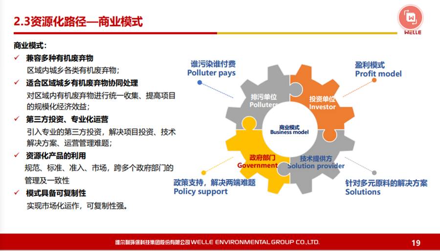當(dāng)前,有些城市對(duì)餐廚垃圾并不是分得特別清楚。如在紹興和上海,主要是餐廚協(xié)同處理。而在有些地方,比如荊門,餐廚垃圾和污泥協(xié)同處理,這樣使得厭氧反應(yīng)和有機(jī)物都會(huì)大大加強(qiáng),這也是我們這幾年積累的一些經(jīng)驗(yàn)。在農(nóng)業(yè)農(nóng)村有機(jī)廢棄物處理方面,特別要講的是和杭能的合作。創(chuàng)始人蔡昌達(dá)先生是農(nóng)業(yè)沼氣領(lǐng)域的老人,深耕行業(yè)四十多年。維爾利與杭能深度合作后,幫助我們?cè)谶@個(gè)行業(yè)里建立起了行業(yè)地位??偨Y(jié)起來,無論是在預(yù)處理技術(shù)還是厭氧處理,沼氣儲(chǔ)存和利用,以及深度延伸的產(chǎn)品開發(fā),都有新的技術(shù)或者產(chǎn)品。尤其是這幾年,我們通過數(shù)字化提升了整個(gè)設(shè)計(jì)、裝備制造、運(yùn)維的管理能力,有機(jī)會(huì)也可以和大家做深度交流。資源化路徑—提升有機(jī)固渣產(chǎn)品附加值僅僅看沼氣,大家還是覺得收益不能保證,尤其算賬不一定能算得過來。即使現(xiàn)在有碳減排的收益,但是要真正形成交易,變成真金白銀也不是那么容易的事。對(duì)此我們也做了新的探索,比如對(duì)于有機(jī)固渣、食用蛋白,或者是做一些食用蛋白的研究,這塊是值得探討的。中國在飼料蛋白這塊缺少量是非常大的,所以有一些機(jī)會(huì)。但是真的規(guī)模化運(yùn)行以后,食用蛋白的標(biāo)準(zhǔn)是不是能夠作為大規(guī)模飼料的原料,還需要做一些探討。目前,我們和國外一些有規(guī)模的機(jī)構(gòu)也在進(jìn)行一些合作,在國內(nèi)做現(xiàn)代化大規(guī)模養(yǎng)殖的示范項(xiàng)目。資源化路徑—提升有機(jī)廢水產(chǎn)品附加值其他的一些應(yīng)用,如肥料化的應(yīng)用也在做探討,甚至我們?cè)谧鲛r(nóng)業(yè)示范園區(qū)的實(shí)驗(yàn),更多是希望在最終產(chǎn)品的出路上做一些嘗試。在商業(yè)模式上,我們企業(yè)也需要做一些思考。無論是和投資機(jī)構(gòu)、投資人,或者是排污企業(yè)、政府、技術(shù)設(shè)備供應(yīng)商等,我們?cè)趺赐ㄟ^共贏的模式創(chuàng)新,能夠形成一些深度的商業(yè)合作?這塊我們也在做不同的思考。環(huán)境保護(hù)涉及到一些新的能源,結(jié)合鄉(xiāng)村振興,一、二、三生態(tài)聯(lián)動(dòng),也給我們這個(gè)行業(yè)帶來非常多的機(jī)會(huì),需要企業(yè)或者在座的專家同仁一起探討,共同發(fā)聲,才能夠把行業(yè)做得更好。在上海的松江、老港、金山、嘉定等濕垃圾處理項(xiàng)目,我們都作為技術(shù)設(shè)備供應(yīng)商EPC深度參與。另外,像維爾利紹興市循環(huán)生態(tài)產(chǎn)業(yè)園(一期)PPP項(xiàng)目,最近可能廚余還要擴(kuò)大四倍。這塊的產(chǎn)品是以沼氣為主,已經(jīng)做了生產(chǎn)線,但是還沒有進(jìn)入商業(yè)運(yùn)行。這些項(xiàng)目相對(duì)來說還沒有真正帶有垃圾分類的本質(zhì)。對(duì)于大城市現(xiàn)在還是以無害化為主,如果未來要到更好的資源化,跟農(nóng)業(yè)結(jié)合的可能更有前景。整個(gè)產(chǎn)業(yè)園餐廚廚余垃圾有天然氣的回收,整個(gè)項(xiàng)目協(xié)同了以后效益還是比較好的。典型案例—農(nóng)業(yè)有機(jī)廢棄物資源化在農(nóng)業(yè)項(xiàng)目方面,我們?cè)诹杭液愚r(nóng)業(yè)部推了“果沼畜”,對(duì)促進(jìn)高品質(zhì)農(nóng)業(yè)發(fā)展有非常好的作用。另外,我們?cè)凇昂邶埥聺?rùn)項(xiàng)目”做了以秸稈為原料的大型沼氣項(xiàng)目,山東民和牧業(yè)(二期)4.2萬方生物天然氣項(xiàng)目,包括雞糞、秸稈等等項(xiàng)目,這些項(xiàng)目在國內(nèi)都有比較好的示范作用。典型案例—城鄉(xiāng)混合原料有機(jī)廢棄物資源化我們?cè)谛熘輫伦隽松锾烊粴忭?xiàng)目,原料有秸稈、餐廚垃圾、糞便等等,這種項(xiàng)目要協(xié)同處理,未來競(jìng)爭(zhēng)力相對(duì)比較強(qiáng),包括原料的成本、出資費(fèi)用等都是有保障的,能夠把環(huán)保和能源化利用進(jìn)行深度結(jié)合。中廣核衡水混合原料10萬方生物天然氣項(xiàng)目等,都在國內(nèi)有比較好的示范作用。王凱軍老師講到,國家發(fā)改委支持了64個(gè)大型規(guī)模化生物燃?xì)庠圏c(diǎn)項(xiàng)目,我們總共做了22個(gè)。這些項(xiàng)目的建設(shè)問題不是很大,但是在運(yùn)行方面,尤其是如何能夠盈利地運(yùn)行,確實(shí)是有些問題的。我們后來做 的“廣西武鳴”項(xiàng)目,工業(yè)原料原來做的是木薯花,后期原料供應(yīng)不足,只好通過買其他原料來解決。從運(yùn)營(yíng)上來說,需要非常多的資源調(diào)配,最終有可能給一些政策,能夠把餐廚、廚余垃圾建設(shè)起來,項(xiàng)目才能盤活。類似這樣的項(xiàng)目,我們希望能夠在各位的支持下能夠運(yùn)行起來。起碼自己建設(shè)的一些項(xiàng)目能夠運(yùn)行起來,真正地做成示范標(biāo)桿。實(shí)際上,項(xiàng)目原料是多元的。但是從投資以及收益來說,復(fù)盤以后算下來,如果后面增加碳減排的設(shè)計(jì),這種項(xiàng)目收益就非常好。現(xiàn)在還不能直接作為經(jīng)濟(jì)補(bǔ)償,但是起碼現(xiàn)在收益可以達(dá)到6%,也可以到8%或者10%。這種項(xiàng)目未來是有預(yù)期的,各地環(hu