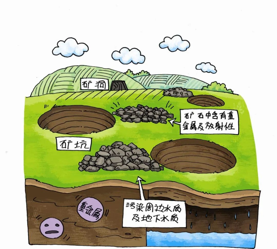 礦山固體廢物是在采礦和選礦過程中產(chǎn)生的沒有工業(yè)價值的礦物,例如尾礦、廢石以及煤矸石等。這些廢物通常都含有重金屬等污染物。另外,還會有選礦過程加入的一些表面活性劑、酸或者堿等危害環(huán)境的成分。有些礦山固體廢物還有一定的放射性。它們通常會堆在礦場附近,既侵占良田,又在長期的風化及雨水的淋洗下,使周邊的地下水質(zhì)變壞,特別是酸性水或含有重金屬的污水,污染周邊環(huán)境。