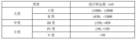 2.0.4 中轉(zhuǎn)站規(guī)模分為大、中、小型三大類和 I、II、III、IV、V 類五小類(表 2.0.1)。